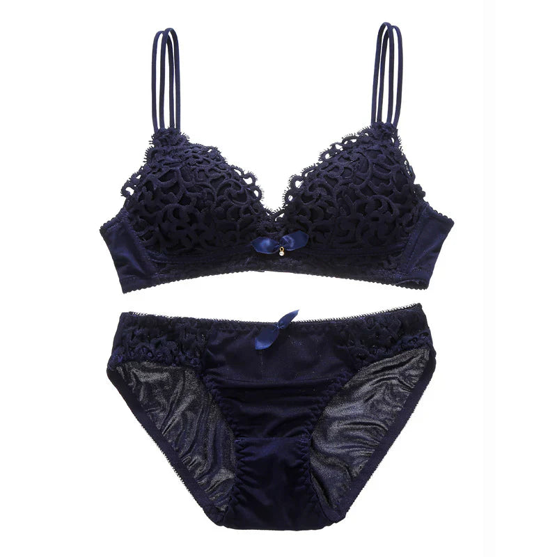 Double Stripped Single Padded Floral Design Bra & Panty Set